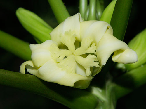 Vasconcellea pubescens wird ja auch «Bergpapaya» genannt (wie ich diesen Namen hasse…), und diese sind maximal teilweise selbstfruchtbar – meine ist ein Mädel.