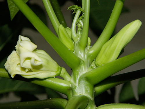 Vasconcellea pubescens wird ja auch «Bergpapaya» genannt (wie ich diesen Namen hasse…), und diese sind maximal teilweise selbstfruchtbar – meine ist ein Mädel.