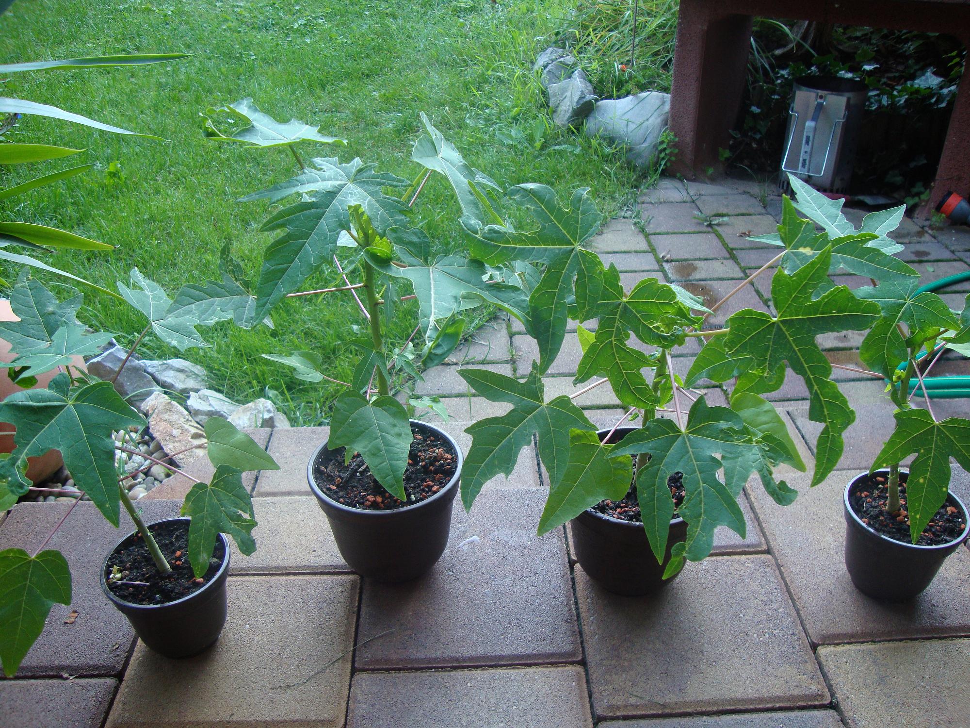 Was ich seltsam finde, dass sich alle 4 Papayas bei so gut wie allen Knoten/Augen (Wie heißt dass den korrekt?) verzweigen - soll ich die Seitentriebe abmachen, fallen die selber ab oder was wird mit denen, weil ich nehm ja an, dass die bei der Wuchsform einer Papaya eher behindern.