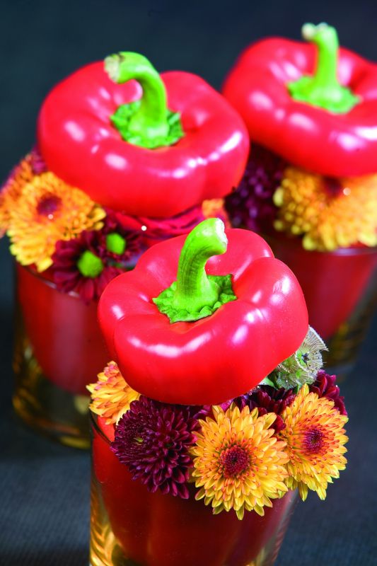 Deshalb hier ein Tipp für die Generation Mikrowelle! Fangt mal mit einem Marktbesuch an und kauft euch ein paar Paprikaschoten. Die gibt es in Gelb, Orange, Rot und Grün. Und dann belohnt ihr euch mit ein paar Blumen, die euch gefallen und farblich eventuell sogar zu den Paprika passen. Zu Hause angekommen schneidet ihr oben am Stunk der Paprika vorsichtig mit einem Messer rundum den „Deckel" ab, entkernt die Schote, trennt die Scheidewände heraus und füllt die so entstandene Paprikavase mit Blumen eurer Wahl. Hier ist Kreativität gefragt. Dann sieht´s nicht nur super aus, sondern gibt euch die Kraft, es beim nächsten mal mit Reis- oder Hackfleischfüllung zu versuchen. Dazu müsstet ihr dann einfach mal eines eurer Kochbücher aufschlagen.