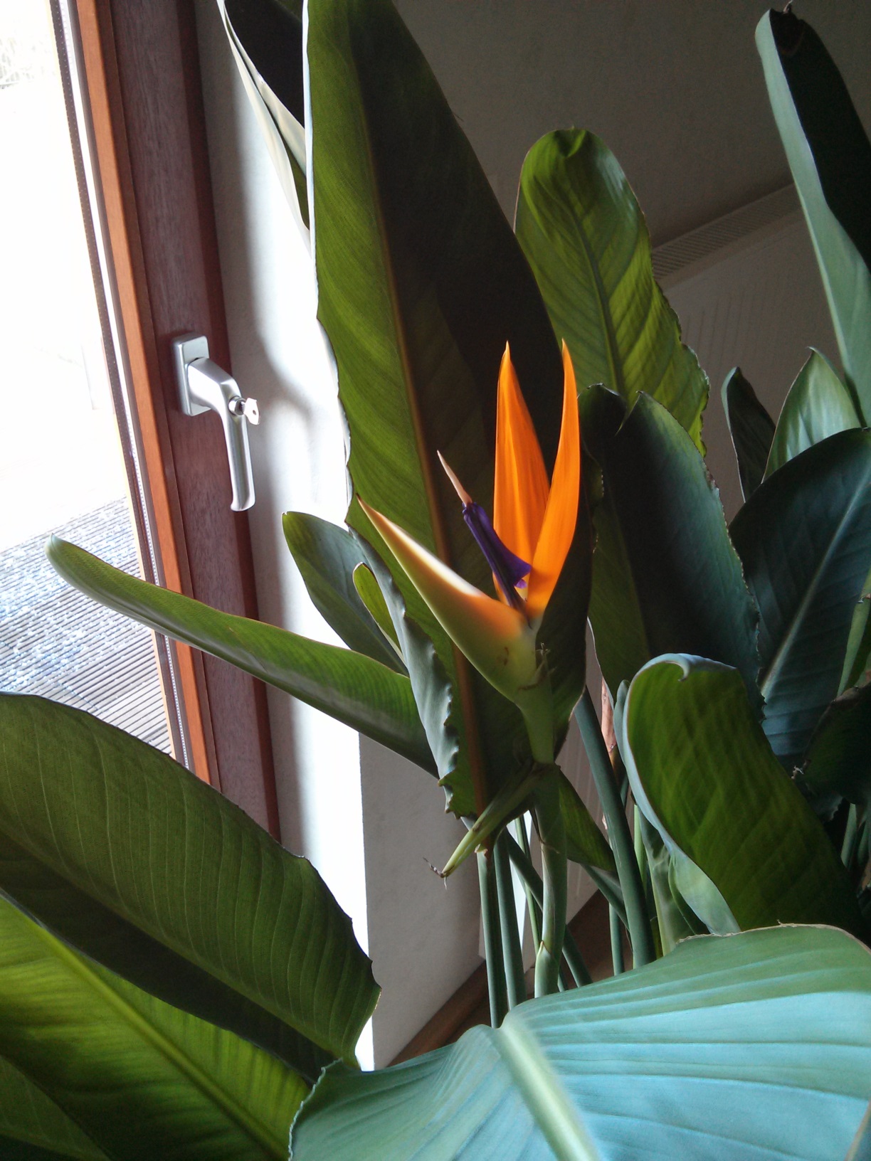 Meine Streli blüht auch gerade. Komischerweise musste ich sie zur Geburt verhelfen. Die Blüte wollte sich öffnen obwohl sie schon von einem andern Blatt umhüllt war.