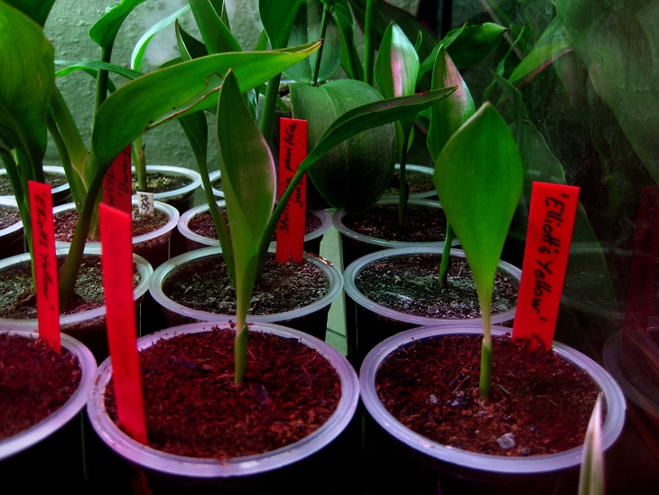 Meine 'Elliott's Yellow'-Sämlinge wachsen auch gut. Es sind jetzt übrigens alle 5 Samen gekeimt. Hier mal ein Bild.