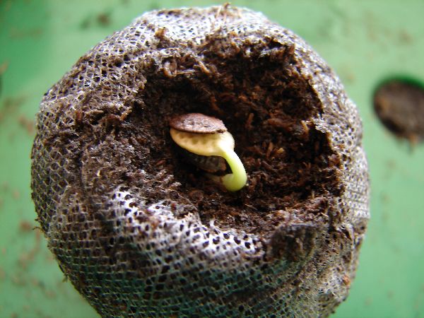 Keimdauer: 2 - 4 Wochen (1 Samen keimte in der 2. Woche, einer in der 3. Woche und einer in der 4. Woche)