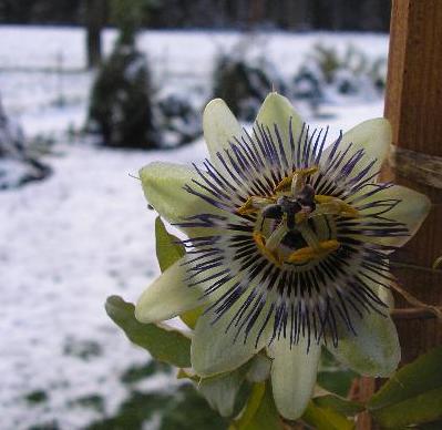 Hallo, meine Passionsblume hat den Sommer über auf der Terasse gestanden-jetzt immer noch, Südseite, hab sie gut gegossen und sie hat ca. 2,50 m lange kräftige Ranken bekommen. Sie sieht auch sehr gut und gesund aus.