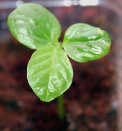 Behandlung: Samen wurden ca. drei Tage lange in Orangensaft (nicht wechseln) eingelegt und danach ca. 1/2 cm tief in Anzuchterde eingepflanzt.