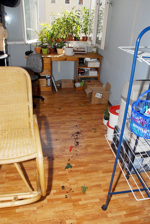 Bei mir war heute zwar kein Hagel im Zimmer, auch keine Ohrenkneifer, nur meine, entschuldigt, blöden Katzen. Ich hab dort vorm und auf dem Fensterbrett jede Menge Pflanzen. Heute hat sich eine meiner Katzen eingebildet, durch die gegenseitig verschlungenen Passis durchzukriechen, um draußen vorm Fenster zu gucken, was es Neues gibt. Tja, der Rückweg durch die Passis erwies sich als tückisch. Sie blieben um den Bauch der etwas dicklichen Katze verschlungen und wollten nicht loslassen. Erst bei der Tür schaffte es meine Ruby, die Passis abzustreifen und mir dieses Chaos zu hinterlassen. Die Passis scheinen alles gut überstanden zu haben. Für die Katzen gibt's aber erst Futter, wenn ich den Saustall aufgeräumt und geputzt hab. Strafe muß sein!