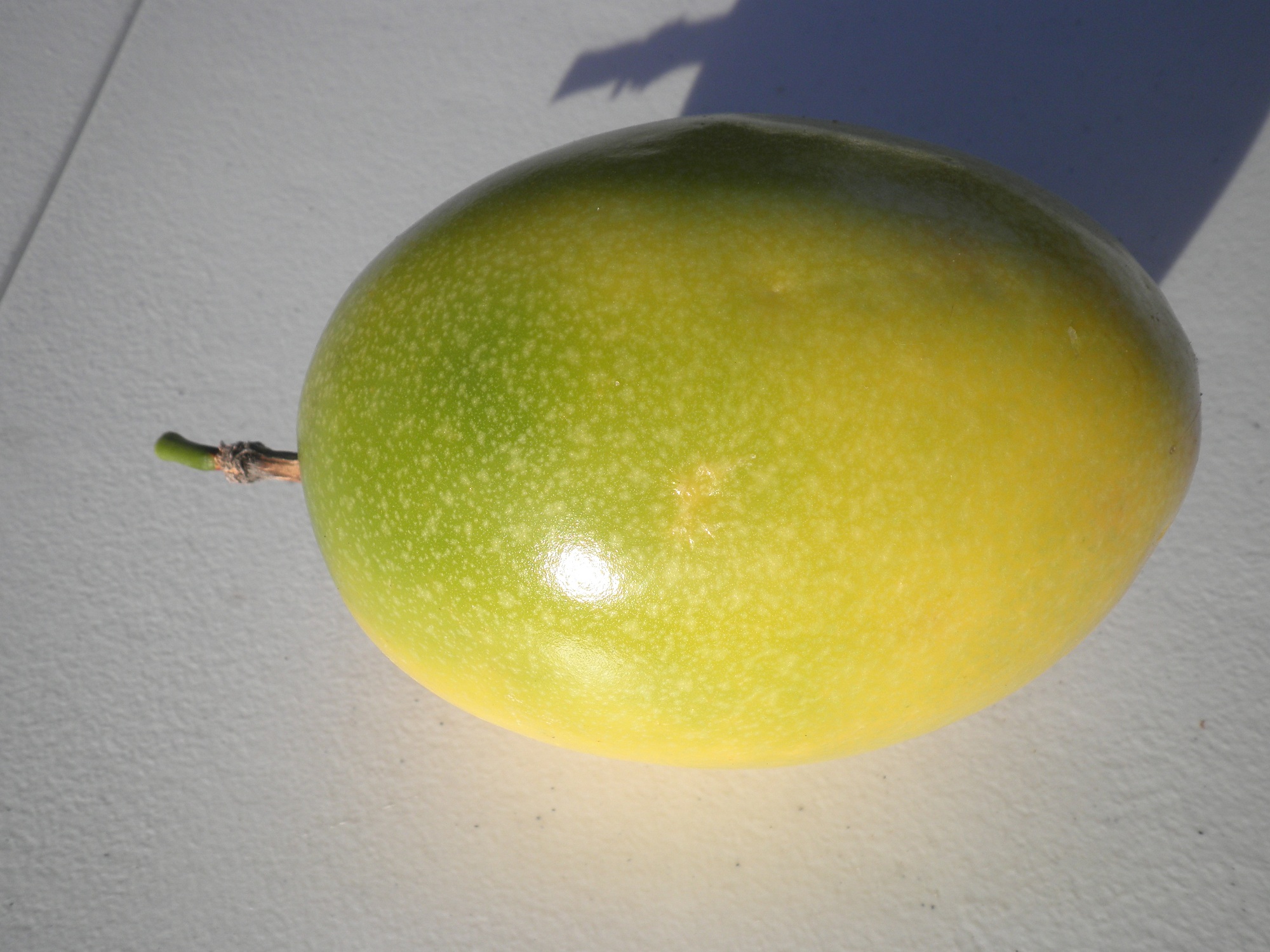 Das Foto taeuscht nicht, die Frucht ist handgross, und das ist noch nicht die Groesste. Es haengen noch groessere dran. Und sie riecht schon ganz toll!