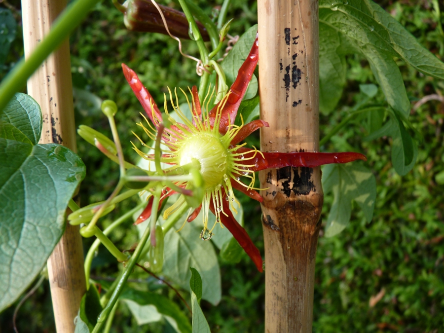 Bei uns herrscht in letzter Zeit auch richtiges Tropenwetter, den ganzen Tag schwül und heiss. Und abends immer Megagewitter. Gestern wars echt heftig, da lagen von Nachbars Baum, der 50m entfernt ist, noch die kleinen Äste im Garten. Aber die Sturmsicherung aus Schnürren lässt keine einzige Passi umfallen.