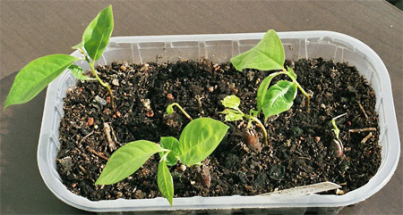 Von den verbliebenen Samen sind inzwischen 8 soweit, daß sie richtige Blätter ausgebildet haben und 2-3 versuchen noch ihr Glück, größer zu werden.