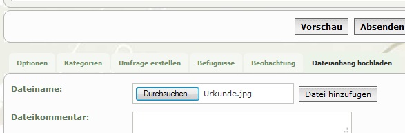 Die Bild-Datei lässt sich dann im Blog über "Dateianhang hochladen" hochladen.