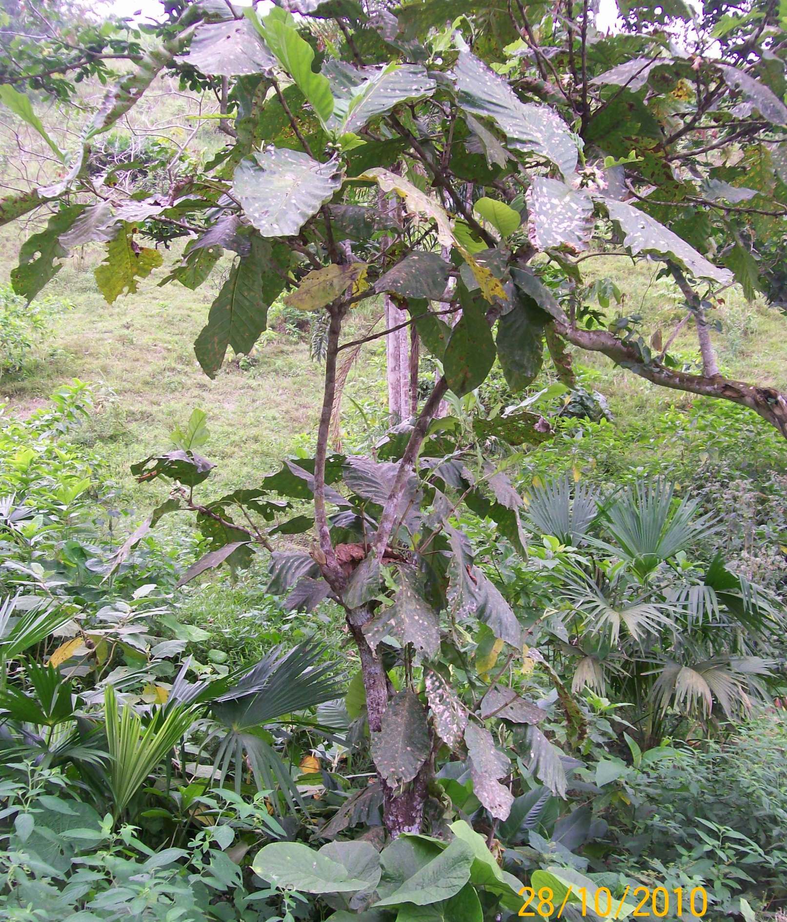 Habe heute diesen kleinen Baum gesehen, der mich zuerst an die „Unbekannte Pflanze Nr. 61 errinnert hat, wegen seinen grossen Blätter.