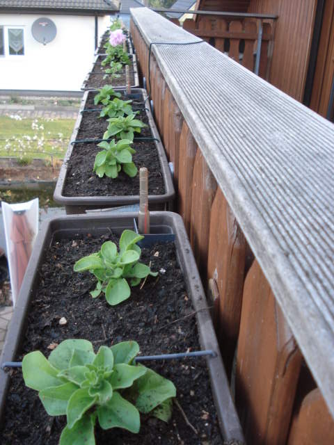 am 26.04.2011 habe ich den siebkorb endlich bekommen und ihn an den betonmischer angeschraubt. damit konnten wir in kürzester zeit unseren kompost durchsieben. damit haben wir alle balkonkästen, kübel, töpfe und ähnliches gefüllt. auf dem balkon haben wir die petunien aus dem folienzelt eingepflanzt.