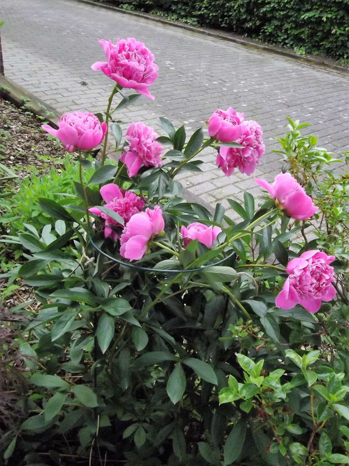 Genauso habe ich es am Samstag auch gemacht und es war gut so, denn nun sind nach dem Regen die Blüten schon ausgefallen oder liegen trotz Rundumstützgestell am Boden.