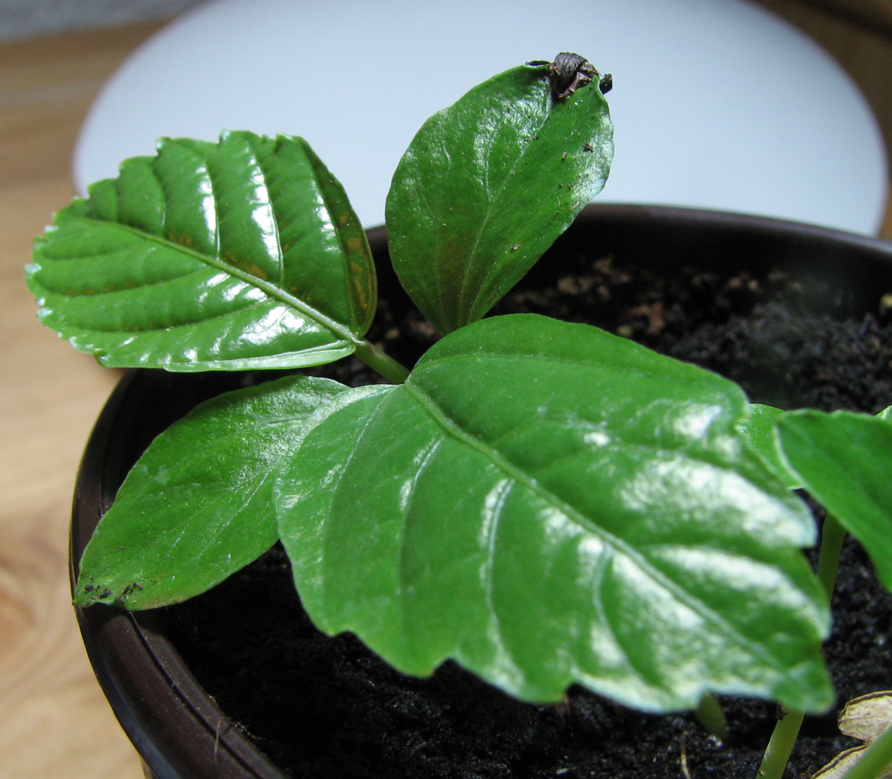 Hier mal ein paar Bilder der Pflanze, an einem der Blätter hängt auf einem der Bilder noch ein Samen dran.
