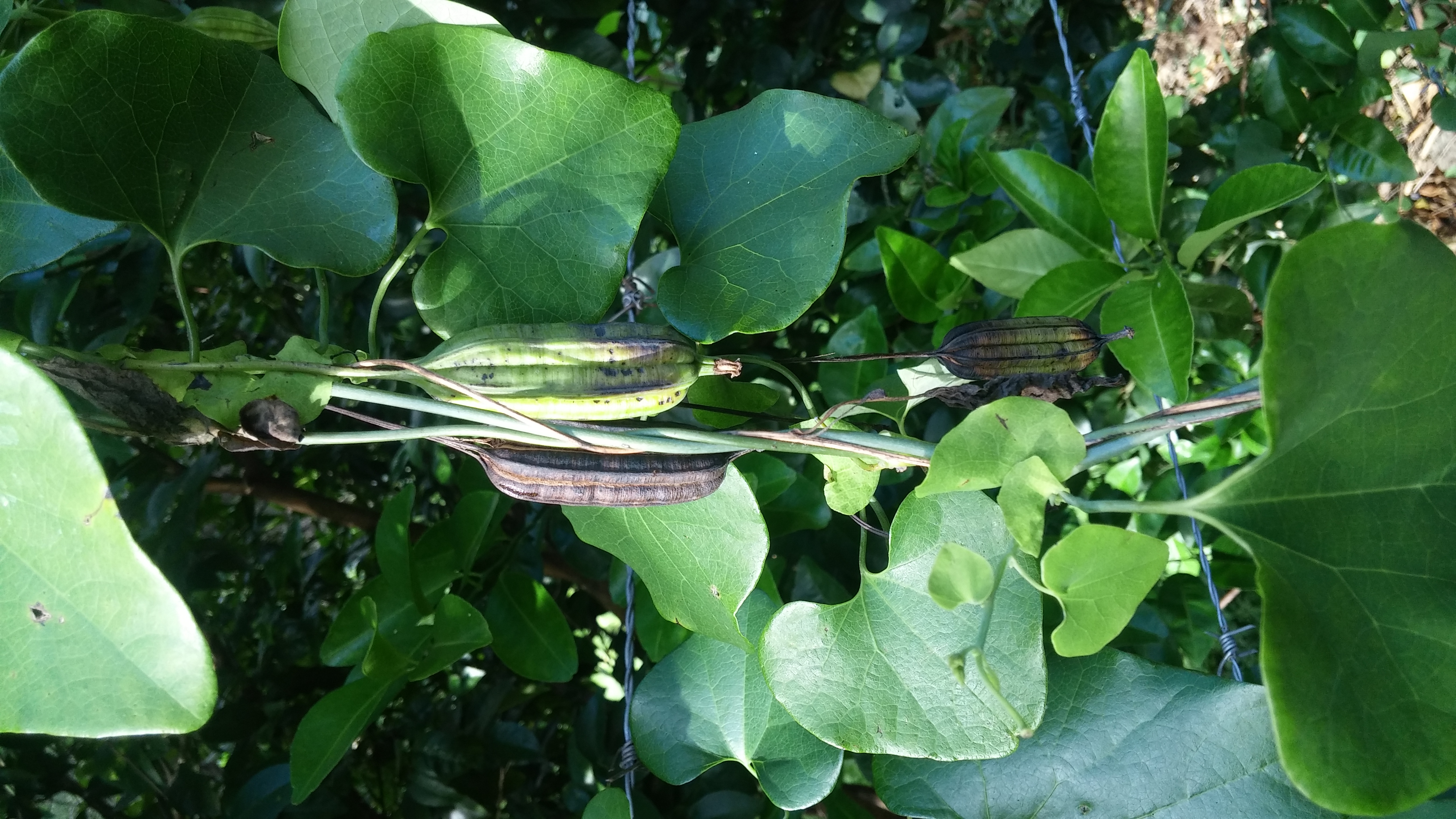 Sie wächst als Kletterpflanze mit Herz-förmigen Blättern and einem sonnigen, trockenen Ort auf einer kleinen Weide. Die Samenkapseln bestehen aus sechs Segmenten mit je duzenden oder sogar hunderten kleinen blättchenartigen Samen.