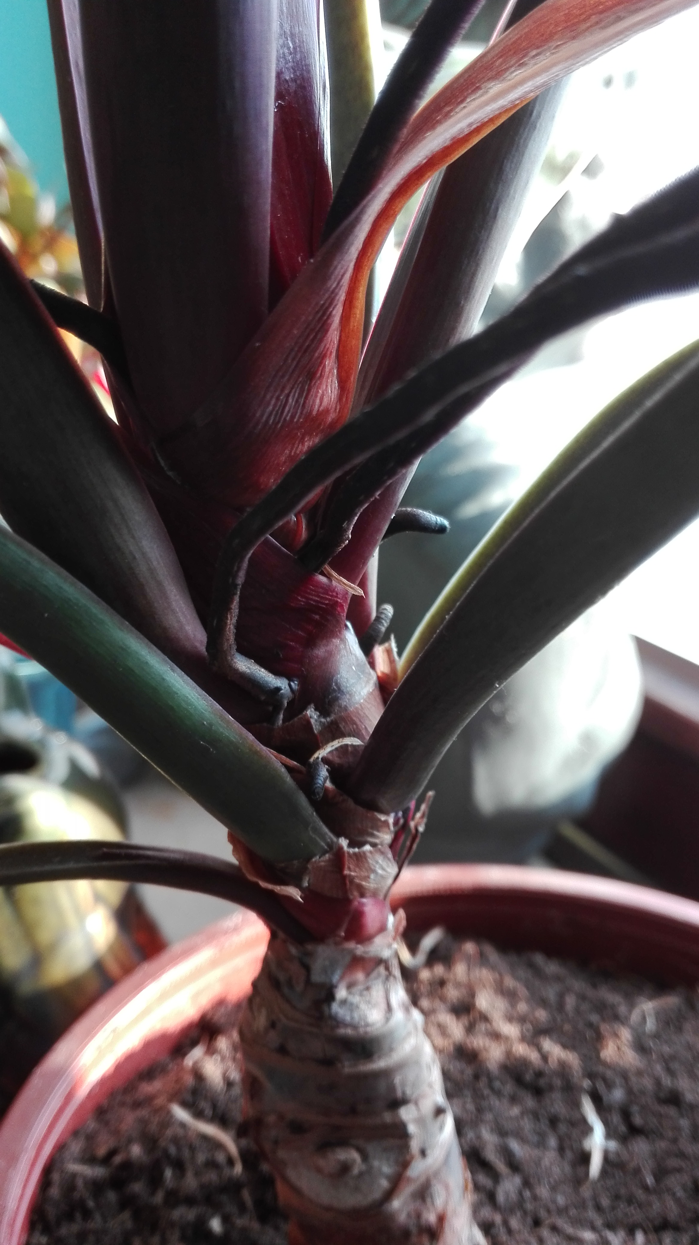 Hallo, vor ca. zwei Jahren, habe ich diese Pflanze geschenkt bekommen. Leider ohne Namensschild. Damals waren die Blätter schon mehr als eine halbe Armlänge groß. Leider sah es so aus, als hätte sie zu lange in der Sonne gestanden. War schon ziemlich beschädigt. Nach und nach, sind alle, bis auf ein Blatt kaputt gegangen. Es hat ewig gedauert, bis neue Blätter kamen. Bei den meisten, musste ich auch immer nachhelfen. Sie ausrollen. Nun ja, mittlerweile sieht sie richtig toll aus. Mehrere Male habe ich versucht, sie im Internet zu finden. Möglicherweise liegt die Lösung nah, aber ich komme nicht weiter. Die Pflanze hat nämlich zuerst rötliche Blätter, die später dunkel grün werden. Keine Ahnung, wie ich das erklären soll, aber die Blätter kommen immer mit einer Hülle, die auch bleibt. Man sieht es sicher auf dem Foto. Eben habe ich beim abstauben gesehen, dass Äste daraus wachsen. Wahrscheinlich Blüten... habe ich zumindest so noch nie gesehen...vielleicht hat jemand eine Idee?