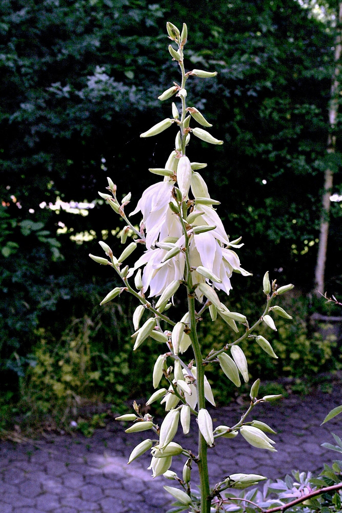 Welche Pflanze ist das? Ein Büschel blaugrüner scharfkantiger schmaler Blätter am Boden, bis zu 50 cm lang. Der Stiel ist ungefähr 1,30 m hoch. Im oberen Drittel die buschige Traube mit Blüten. Die Pflanze blüht seit 25 Jahren zum ersten Mal!!