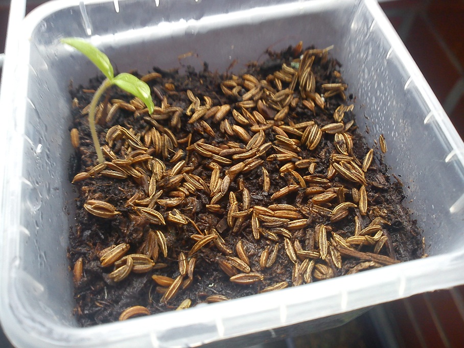 Hier die Keimung einer gewöhnlichen Paprika aus dem Supermarkt / Gemüsetheke.