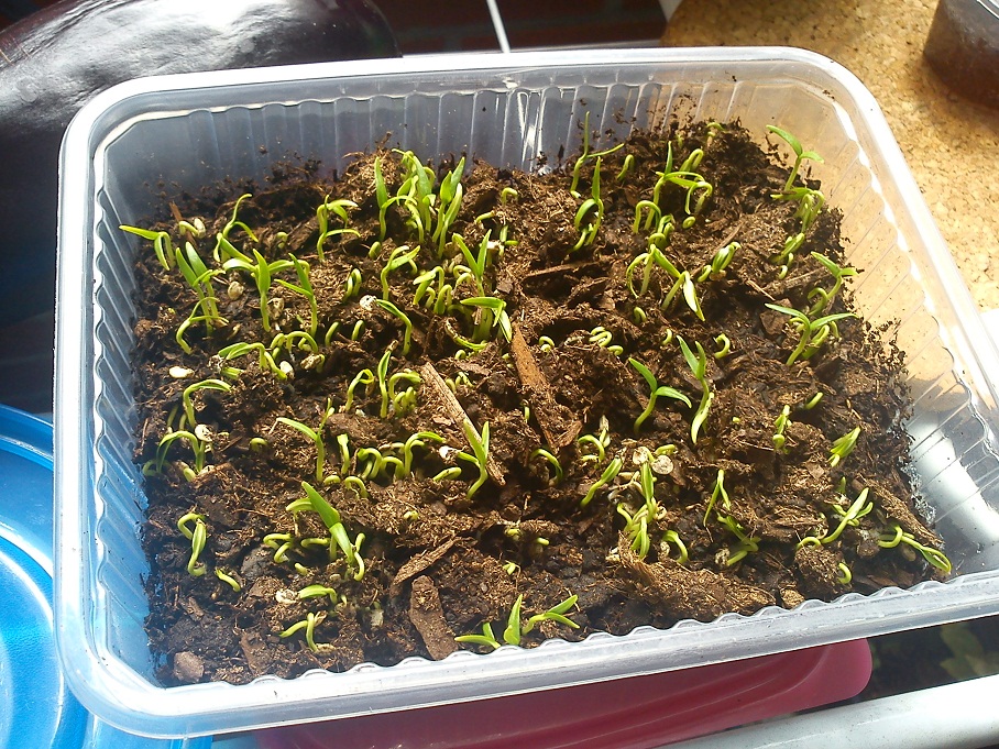 Hier die Keimung einer gewöhnlichen Paprika aus dem Supermarkt / Gemüsetheke.