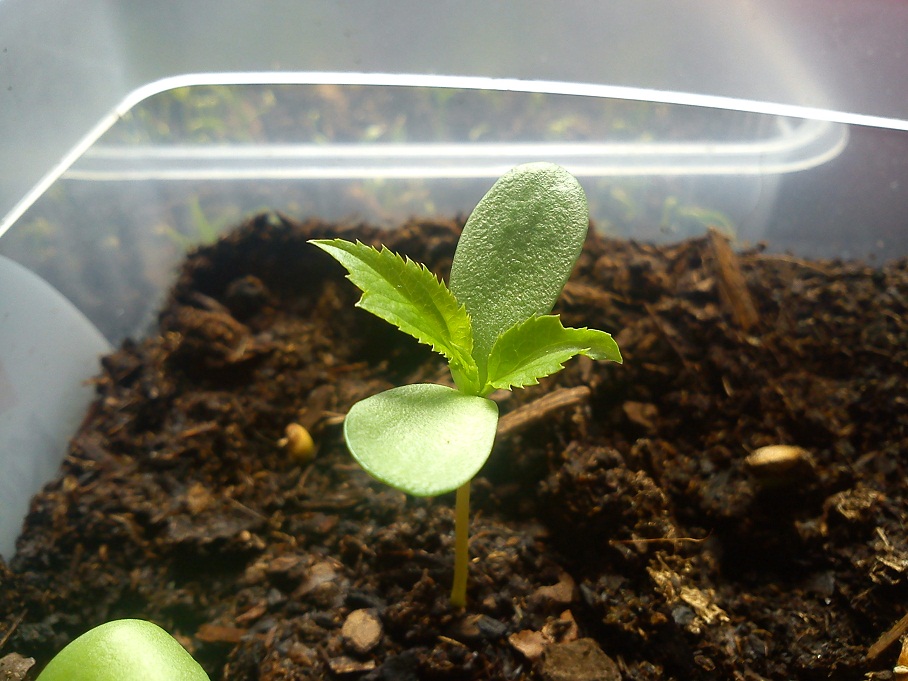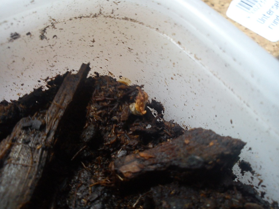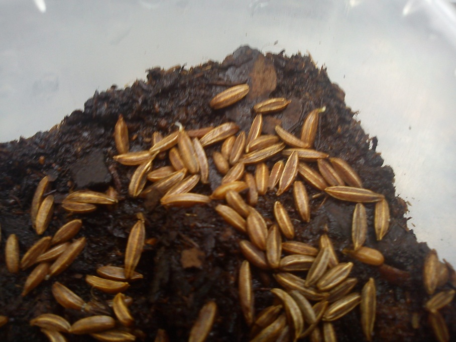 Als am 5.Tag immernoch nichts passierte, bin ich abends auf Dunkelkeimung gegangen und habe die Samen leicht mit Blumenerde "bestreut". Und, siehe da............