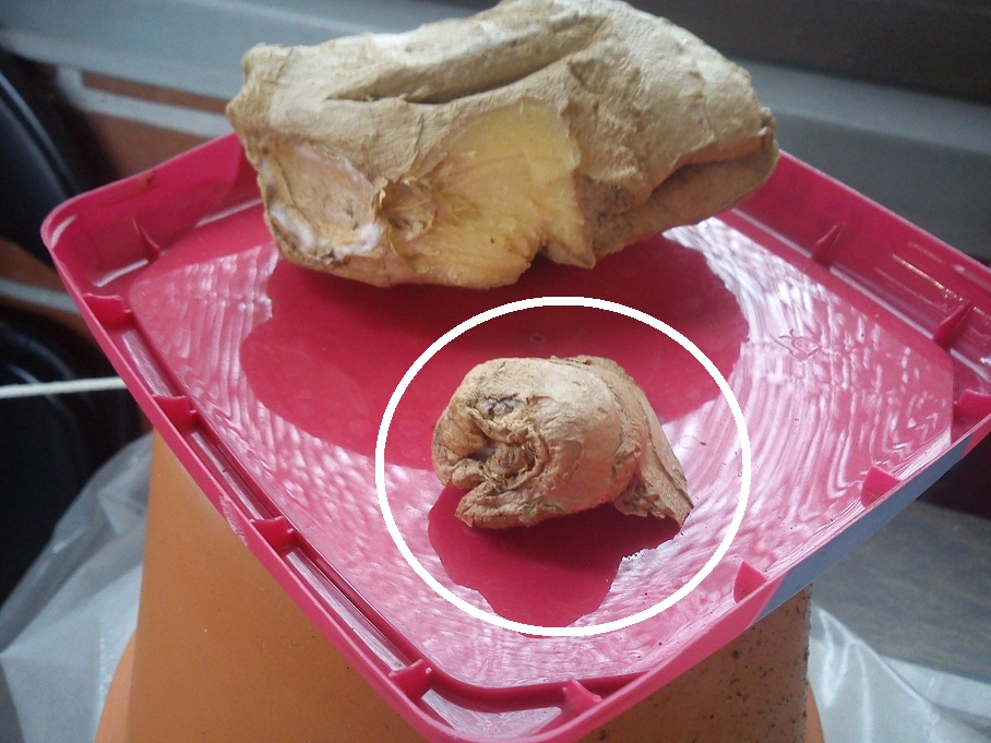Hab' dir noch ein Extrafoto gemacht mit der alten Original Ingwer Knolle. Lag bei mir noch im Kühlschrank.