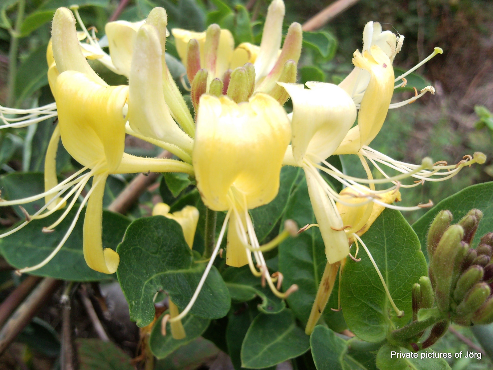 Gestern hab ich auf einer Sonnenseite eines Hanges im oberen Harz gefunden. Meine Vermutung ist Wald-Geißblatt (Lonicera periclymenum). Mal sehen ob ich richtig liege?