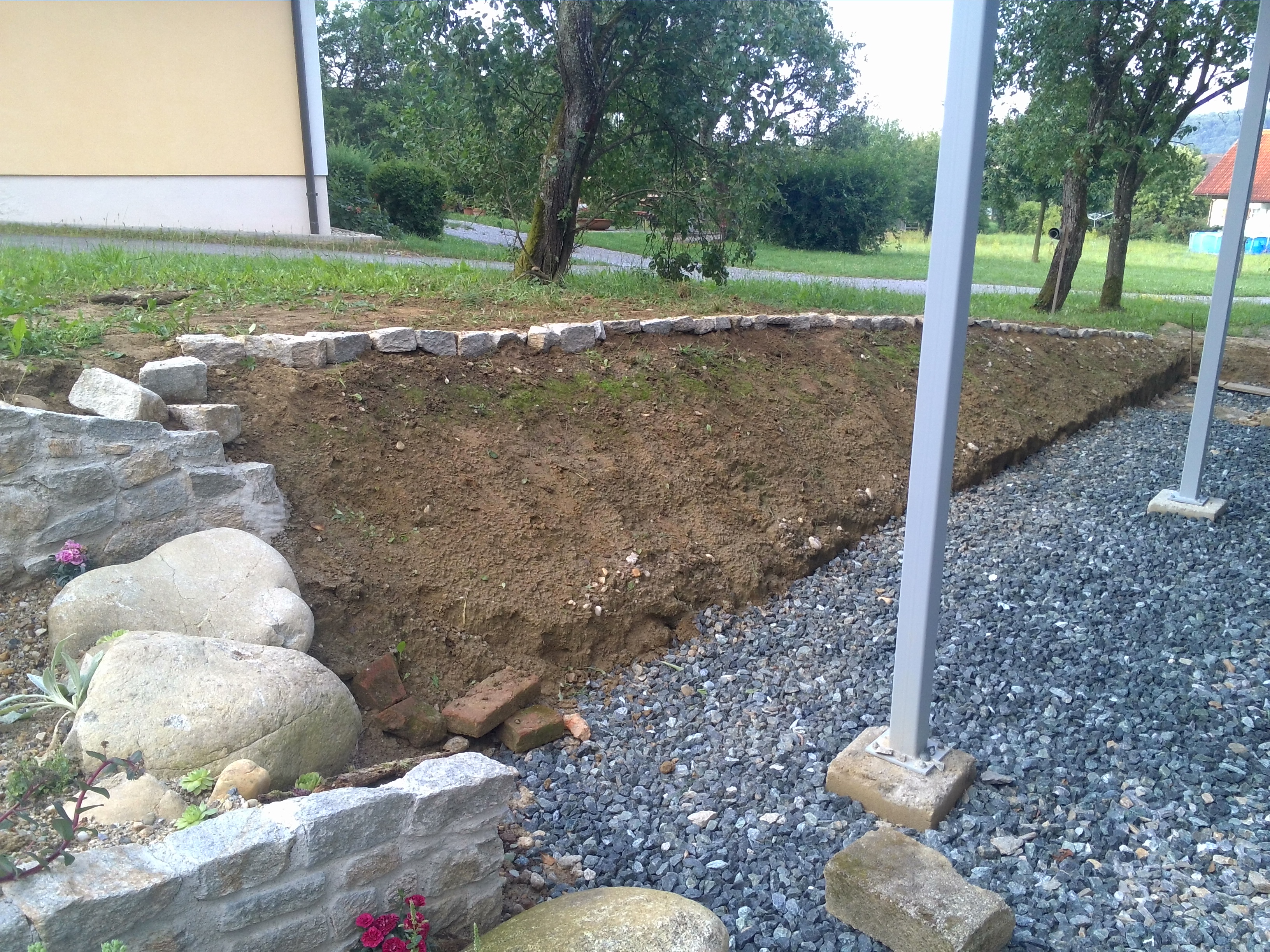 @ CL: ja es geht um den Bereich zur Terrasse hin. Also von der Steinreihe weg bis zum Schotter. Das mit dem Bild ist tatsächlich ein wenig unglücklich geknipst ( es täuscht in der Tat) 100 % Gefällle wäre ja Horror zum bepflanzen
