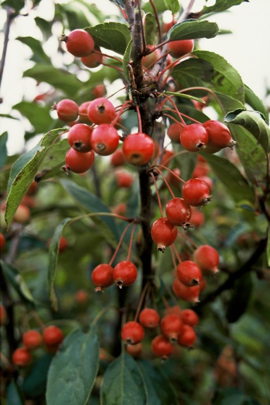 Auch Zieräpfel lassen die Jahreszeiten deutlich miterleben und sind im Frühling und im Herbst besonders eindrucksvoll: Im Mai sind sie überreich mit weißen, rosafarbenen oder roten Blüten bedeckt, im Herbst tragen sie auffallende Miniäpfel, oft in leuchtenden Gelb-, Orange- oder Rottönen. Die Früchte bleiben bei einigen Zierapfelbäumen bis weit in den Winter hinein an den Zweigen.