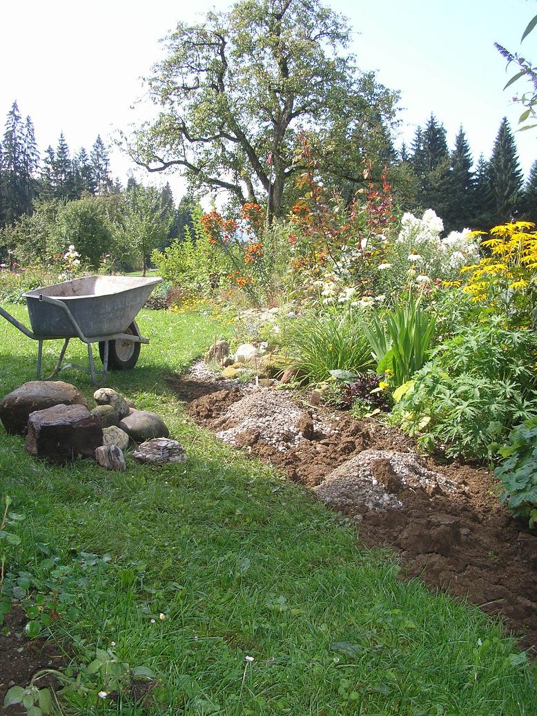 Bei mir waren es für diesen neuen Bereich Ableger verschiedener Hauswurzen, weiße Bartglockenblumen, Schafsteppich, Kugelblumen, botanische Fingerhüte, türkische Glockenblumen, Wolfsmilch, Erdbeerminze und natürlich (wie typisch ) Akelein (rockii, bertolonii und "Crimson Lady")!