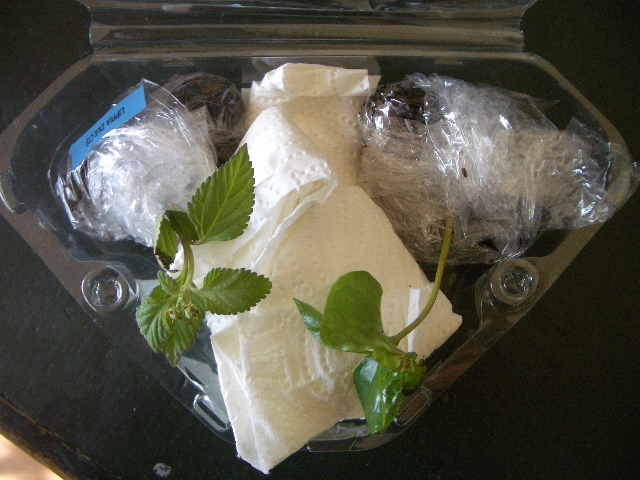 also ich lege feuchte Watte mit um die Wurzeln und / oder Küchenkrepp und packe das dann in Klarsichtfolie.