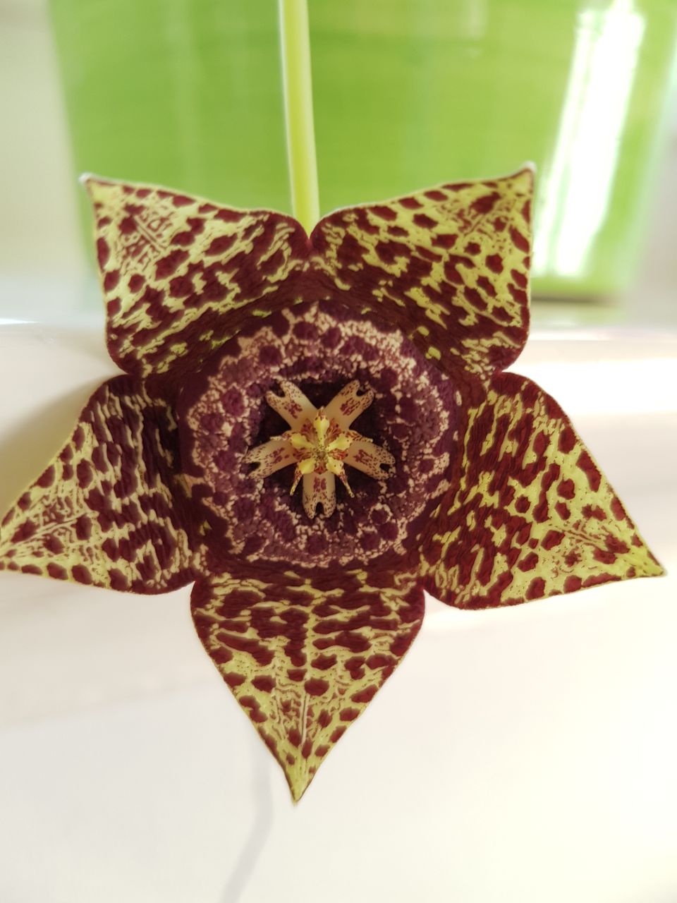 kennt jemand diese Pflanze? Sie steht schon seit Jahren bei meinem Freund auf der Fensterbank, aber durch die Blüte ist sie mir heute erst richtig aufgefallen.