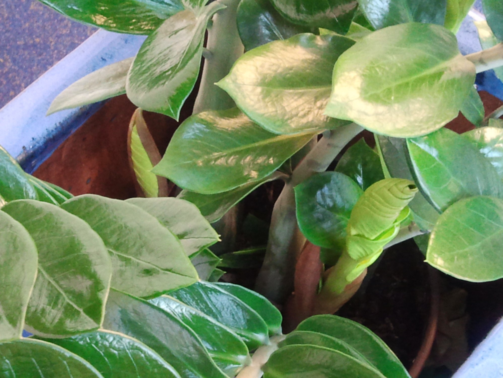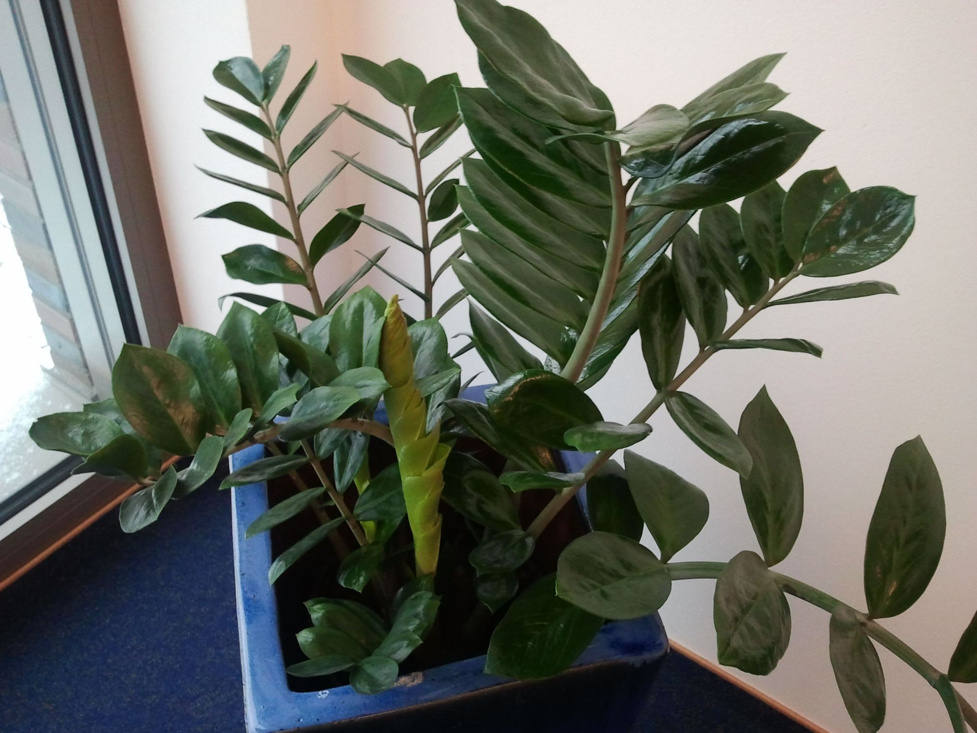 ist es eigentlich normal, dass eine Pflanze im Winter derart treibt, wie unsere Büropflanze auf den Fotos? Vielleicht kann mir auch jemand verraten, um welche Sorte es sich eigentlich handelt