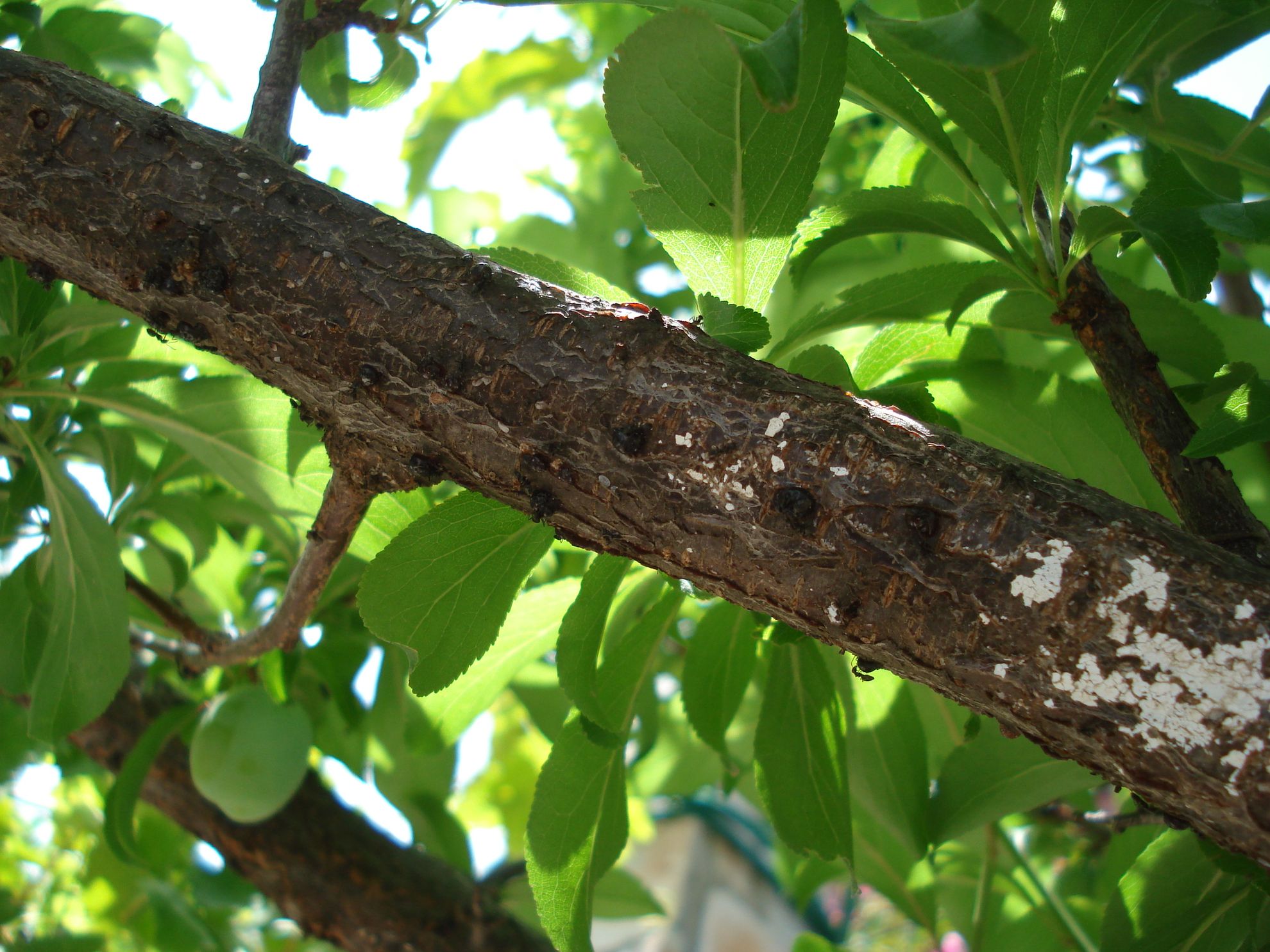 Dir Früchte und Blätter des Baumes sind in Ordnung. Die dickeren Äste des Baumes sind aber von Schädlingen übersäet. Sie sind schwarz, an den Ästen laufen Ameisen herum. Im Forum habe ich so eine Schädlingsbeschreibung nicht gefunden. Was kann man dagegen tun? Diese Schädlinge waren auch voriges Jahr vorhanden, aber ich hatte schöne gesunde Früchte geerntet. Die wieße Flecken an den Ästen sind Kalkrückstände.