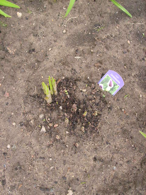 1. Pflanzen sie die Zwiebel 6 cm tief in einen Topf mit etwas feuchter Erde.