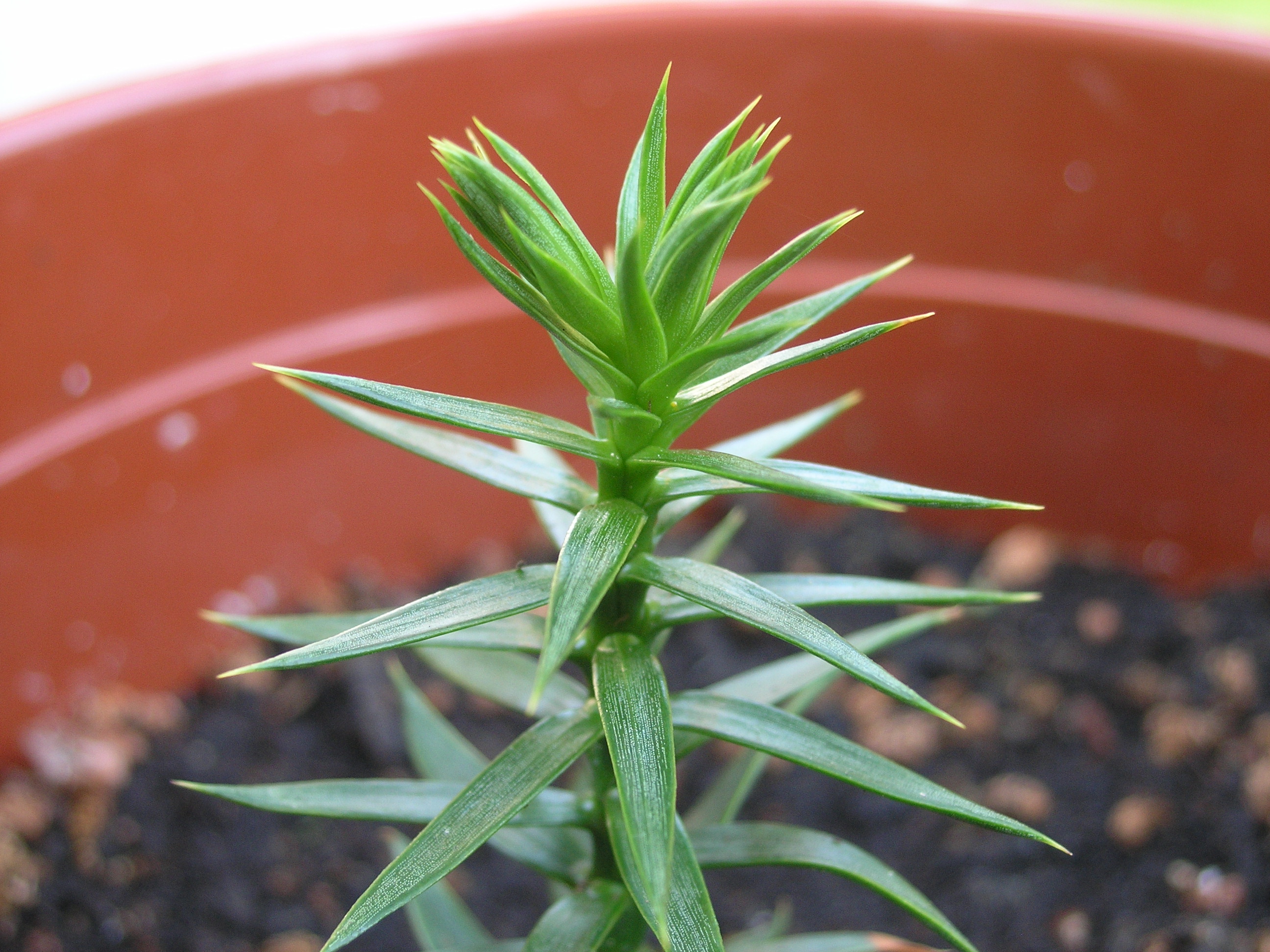 Ich habe noch eine Araucarie hier, da sind die unteren Blätter leicht gewellt, das wirkt dann, als würden sie welken. Bei den großen biegen sich die unteren Blätter leicht nach unten, das wirkt von Weitem auch so, als würde sie die Blätter hängen lassen. Wenn man sie anfasst, sind sie aber trotzdem kräftig.