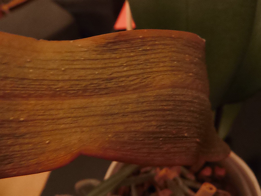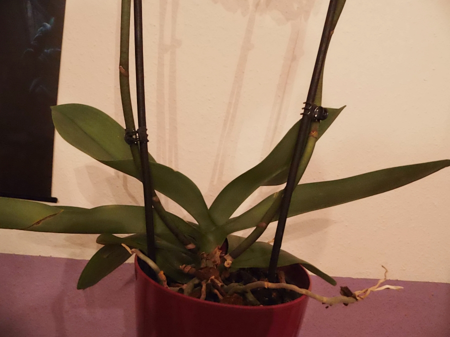 Und zwar habe ich heute Abend nach kurzem Check eine fast abgeblühte Phalaenopsis im Supermarkt mitgenommen. Beim Auspacken erst fiel mir ein gelbes Blatt entgegen auf dem sich kleine weiße Punkte befinden. Gängige Schädlinge (Spinnmilben, Wolläuse, etc.) sind nicht am Werk.