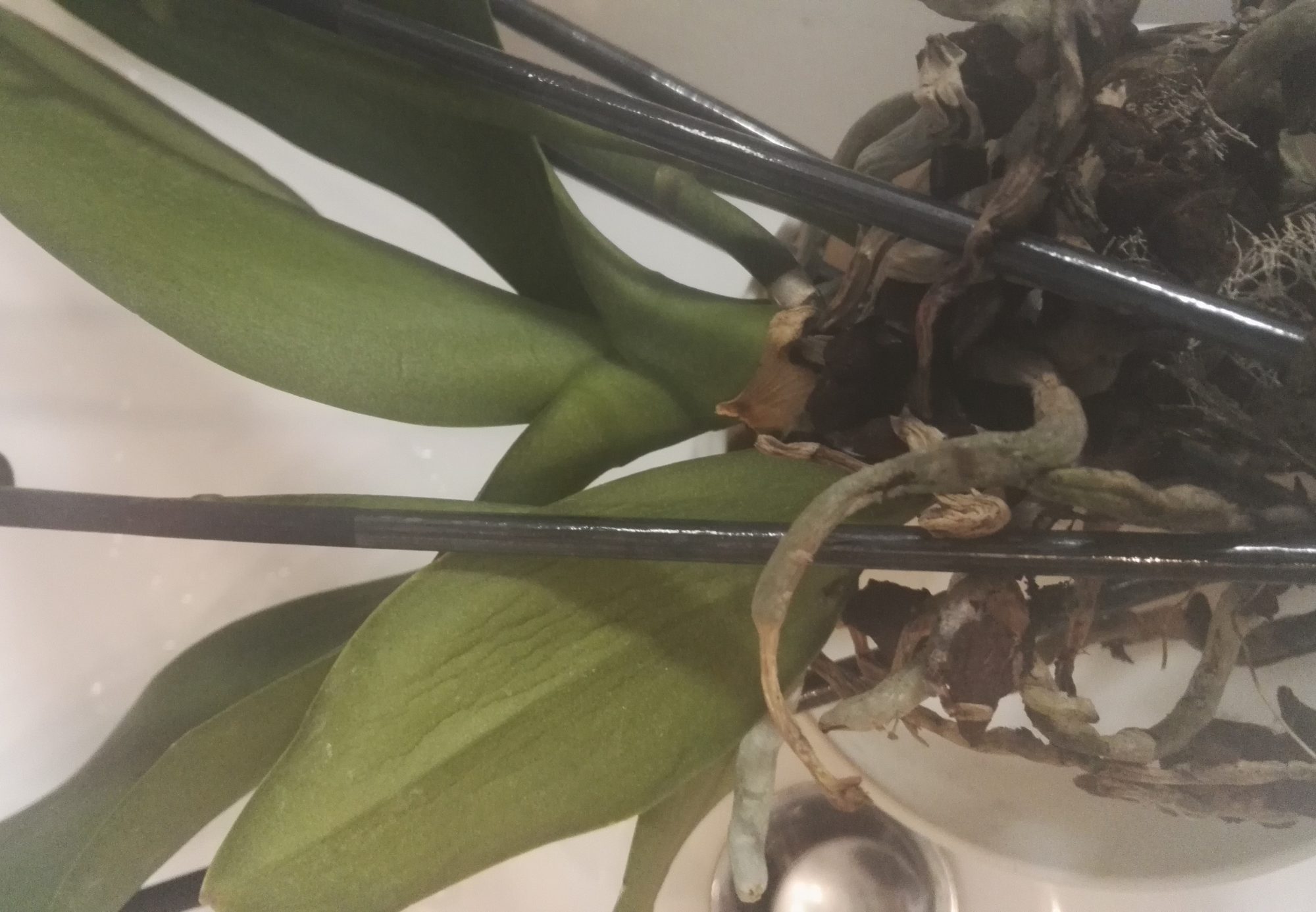 Dennoch wurde erst ein Blatt gelb, jetzt das 2., bzw entdeckte ich unter diesem noch ein kleines Blatt, dass schon abfiel. Außerdem werden durch den durchsichtigen Topf Fruchtkörper von Pilzen sichtbar!