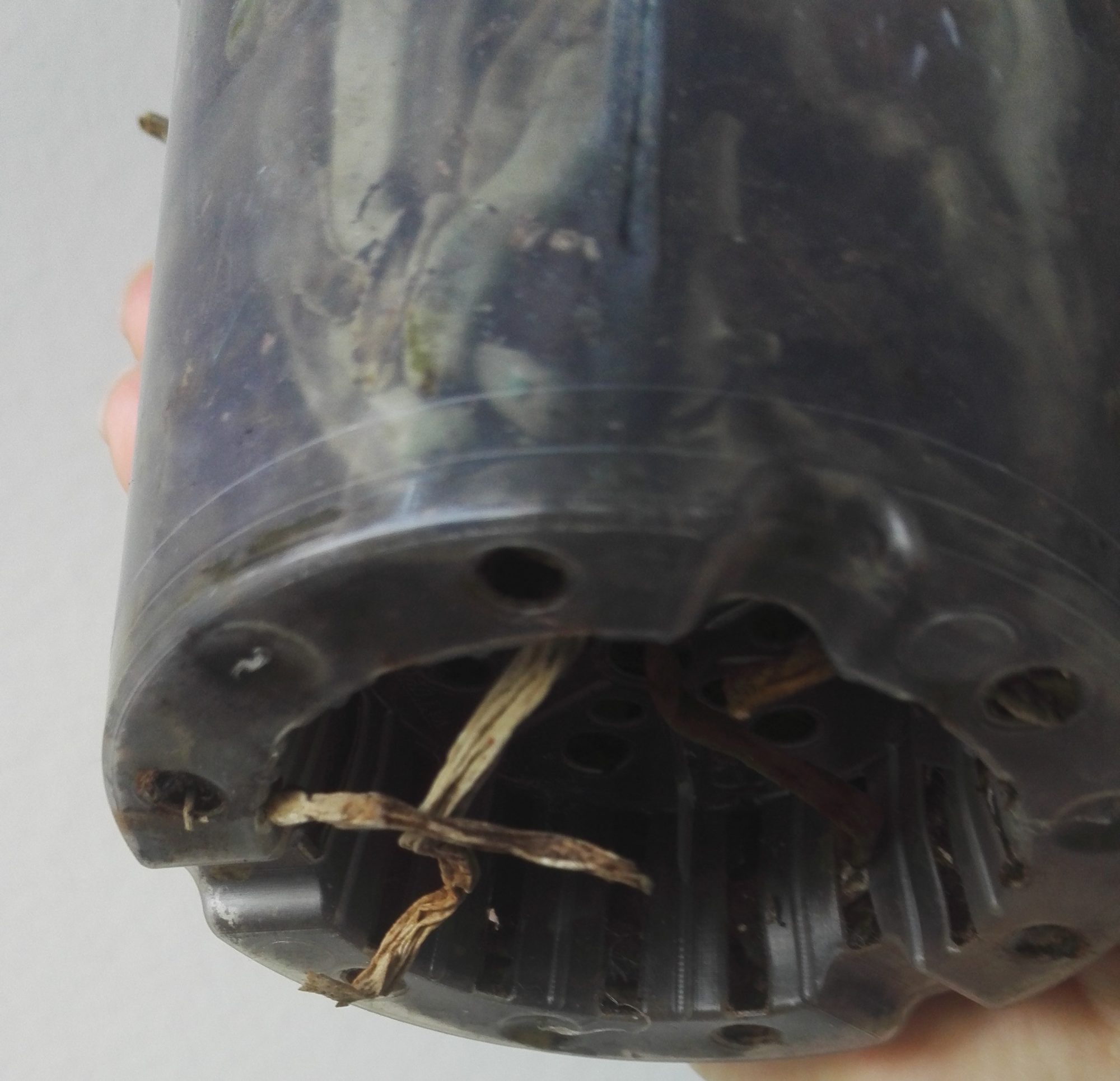 Dennoch wurde erst ein Blatt gelb, jetzt das 2., bzw entdeckte ich unter diesem noch ein kleines Blatt, dass schon abfiel. Außerdem werden durch den durchsichtigen Topf Fruchtkörper von Pilzen sichtbar!