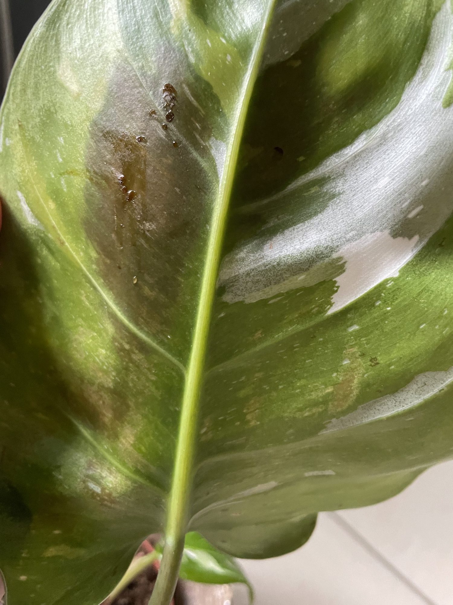 Könnten es auch Schädlinge sein? Habe gerade an einem Blatt eine bräunliche Flüssigkeit entdeckt und diese abgewischt...