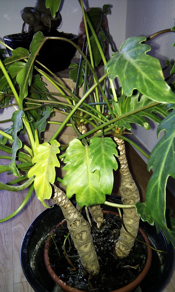 ich habe seit ein paar Wochen einen Philodendron Xanadu. Die Pflanze besteht aus mehreren Stämmen, die in einem relativ kleinen Topf stehen. Ein Stamm hat noch quasi satte, grüne Blätter, die anderen Stämme jedoch haben eher blassere und fast gelbe Blätter bekommen. Was kann da sein?