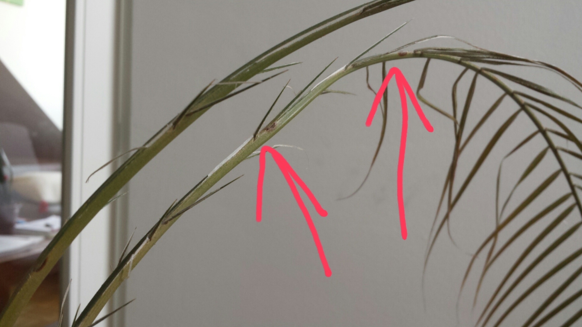 Die Palme hab ich vor 5 Jahre geschenkt bekommen. Sie steht in der Nähe von einem Dachfenster und bekommt für ca. 1 Stunde direktes Sonnenlicht am Tag. Den restlichen Tag ist es dann dementsprechend hell in der Wohnung. Die Palme steht von Anfang an auf diesem Platz. Solange sie in dem kleine Topf war in dem ich die Palme bekommen habe, ist alles ok gewesen es sind viele Blätter gewachsen und die waren auch grün (nur an den Spitzen braun, was ja glaube ich normal ist). Als ich aber bemerkt hab, dass die Wurzeln schon oben auf der Erde zu sehen waren, hab ich nachgelesen und da stand, wenn man die Wurzel sehen kann, ist es zeit den Topf zu wechseln. Nach dem Umtopfen sind die Blätter braun geworden und vertrocknet. Aber es kommen weiterhin ständig neue Blätter, was mich hoffnungsvoll stimmt.