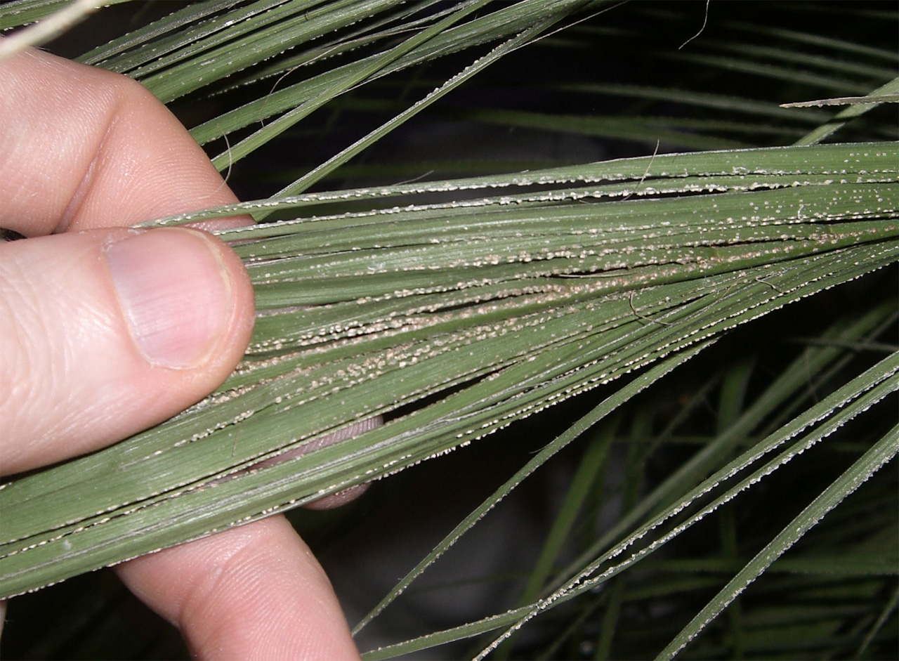 Wenn so ein Wedel aus der Pflanze wächst klebt er ja zusammen, das was ihn da zusammenhält sieht so ähnlich aus wie das was nun an den Aussenseiten der Blätter klebt.