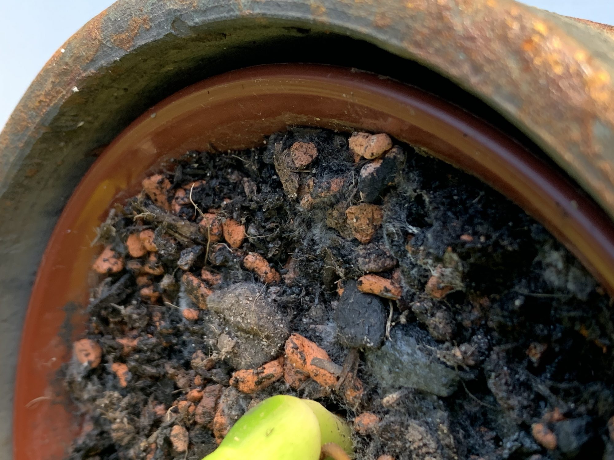 Hättet ihr eine Idee was es sein könnte? Kohleresistenter Schimmel (höhö)? Ein anderer Pilz? Oder doch ein Schädling? Staunässe kann ich mir nach dem Umtopfen eigentlich nicht mehr vorstellen, aber vielleicht ist es auch das.