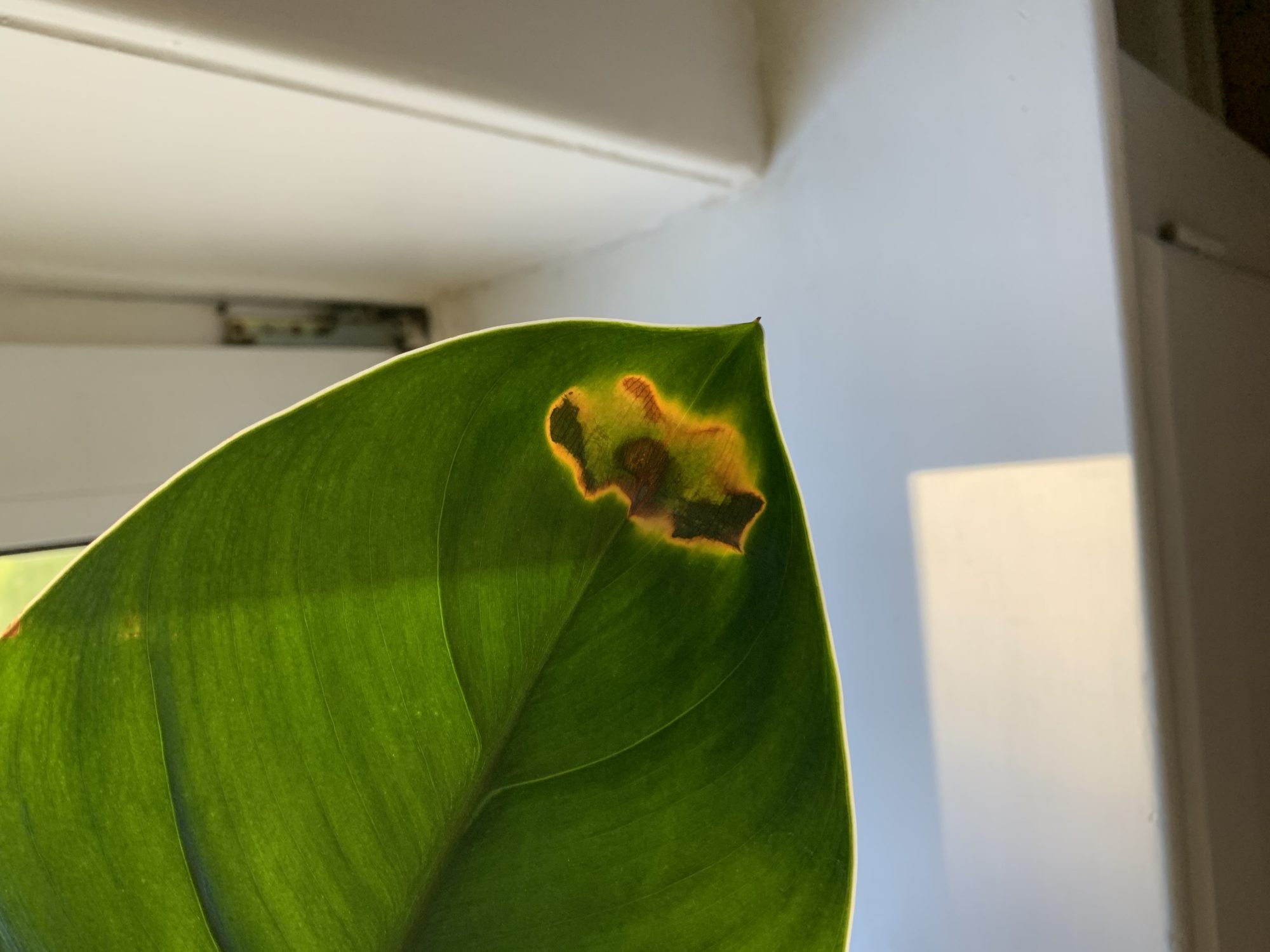 Ich habe noch ein Bild von einer gelben Stelle an einem Blatt hinzugefügt. Vielleicht besteht ein Zusammenhang. Ich gehe bei dieser allerdings von einem Kälteschaden aus. Die Stelle breitet sich auch schon seit ein paar Tagen nicht mehr weiter aus.