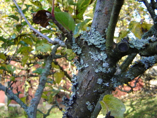meine Bäume und auch Sträucher im Garten haben alle diesen komischen Pilz an den Ästen (siehe Bild im Anhang).