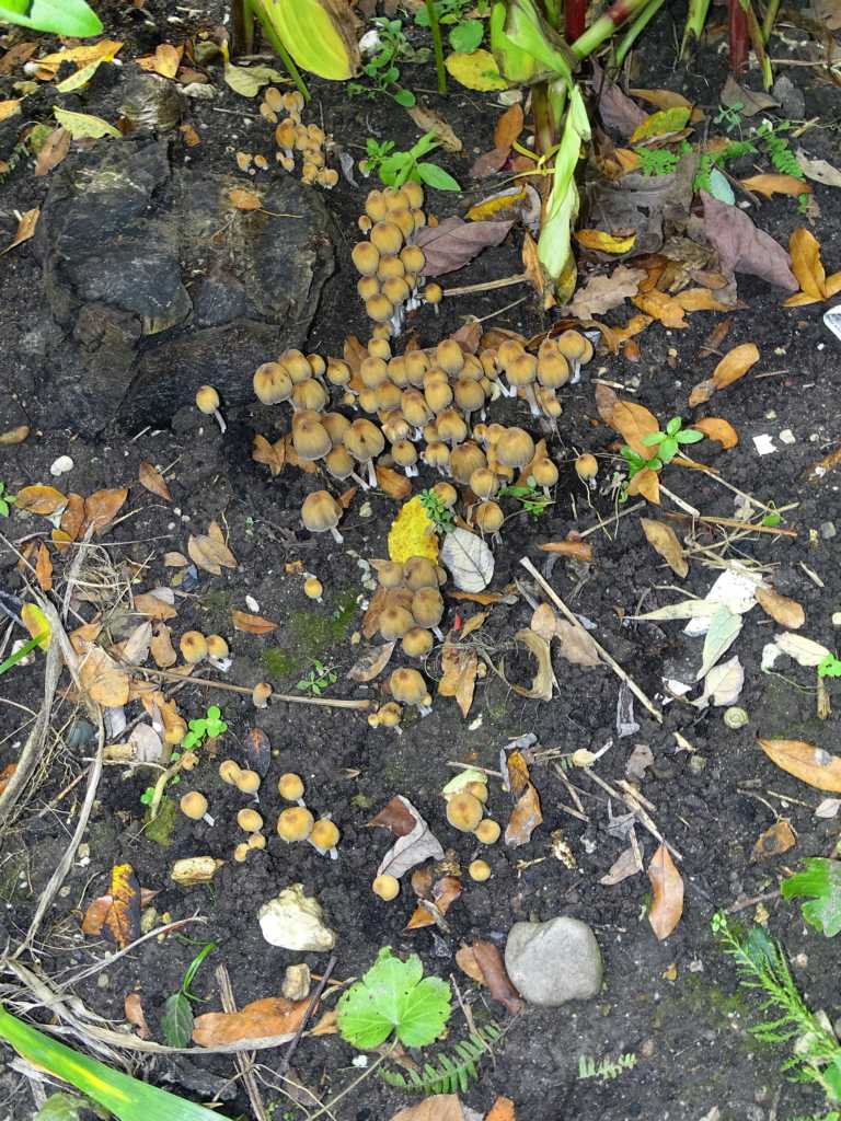 Zur Zeit wachsen im Garten auf Stümpfen ehemaliger Fichten wieder Pilze. Ich möchte sie mal als Stockschwämmchen bezeichnen. Vielleicht weiß eine(r) im Forum Genaueres. Ich beute sie nur fotografisch aus, da ich annehme, dass sie zur größten Gruppe der Pilze gehören: als Speisepilze wertlos!