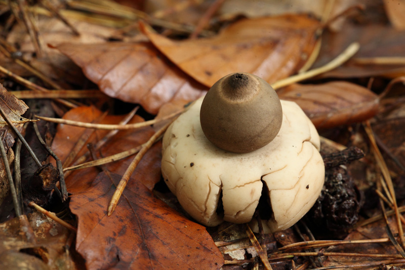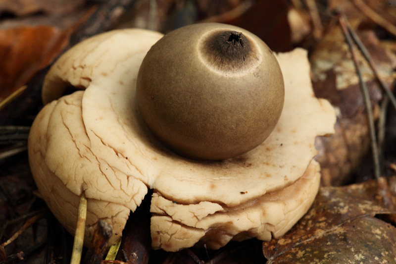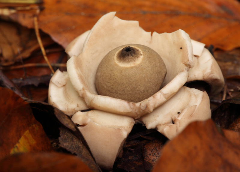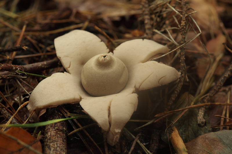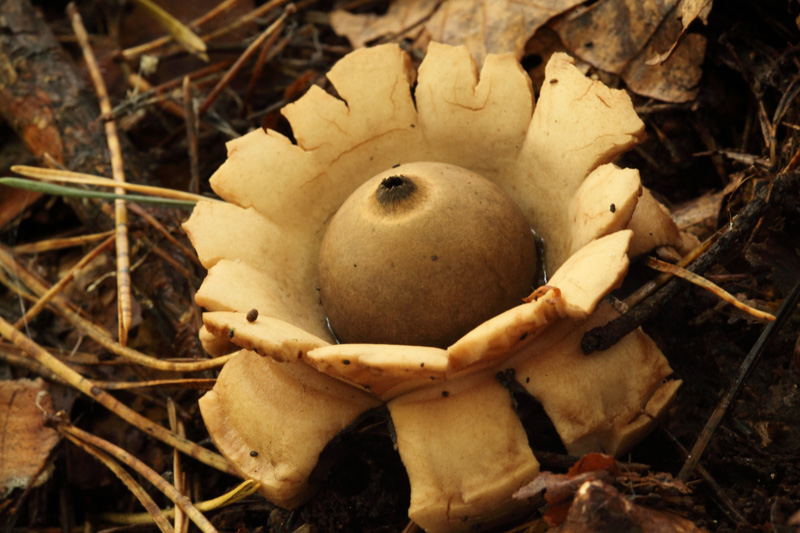 In meinem Garten unter den Rhododendren wächst schon seit Jahren der Erdstern (Geastrum).