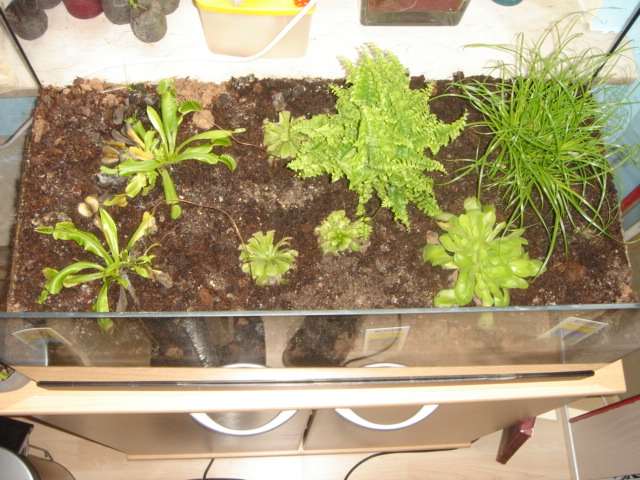 Ich habe ein Aquarium habe unten eine ca 4cm. dicke Drainageschicht aus Kies eingefüllt, es dann mit einer Mischung aus Torf und Sand bis zur hälfte befüllt und oben drauf 2 Venusfliegenfallen 2 Pinguicula und 4 Drosera aliciae gepflanzt. Das ganze ging ein halbes jahr sehr gut. Dann ist auf einmal einen Pinguicula komplett weggefault und die Venusfliegenfallen bekommen auch ganz schwarze Blätter. Was ist da auf einmal passiert? Ich nehme nur Regenwasser zum gießen achte darauf das es nicht zu kalt ist und das Aquarium steht sehr hell ohne direkte Sonne.