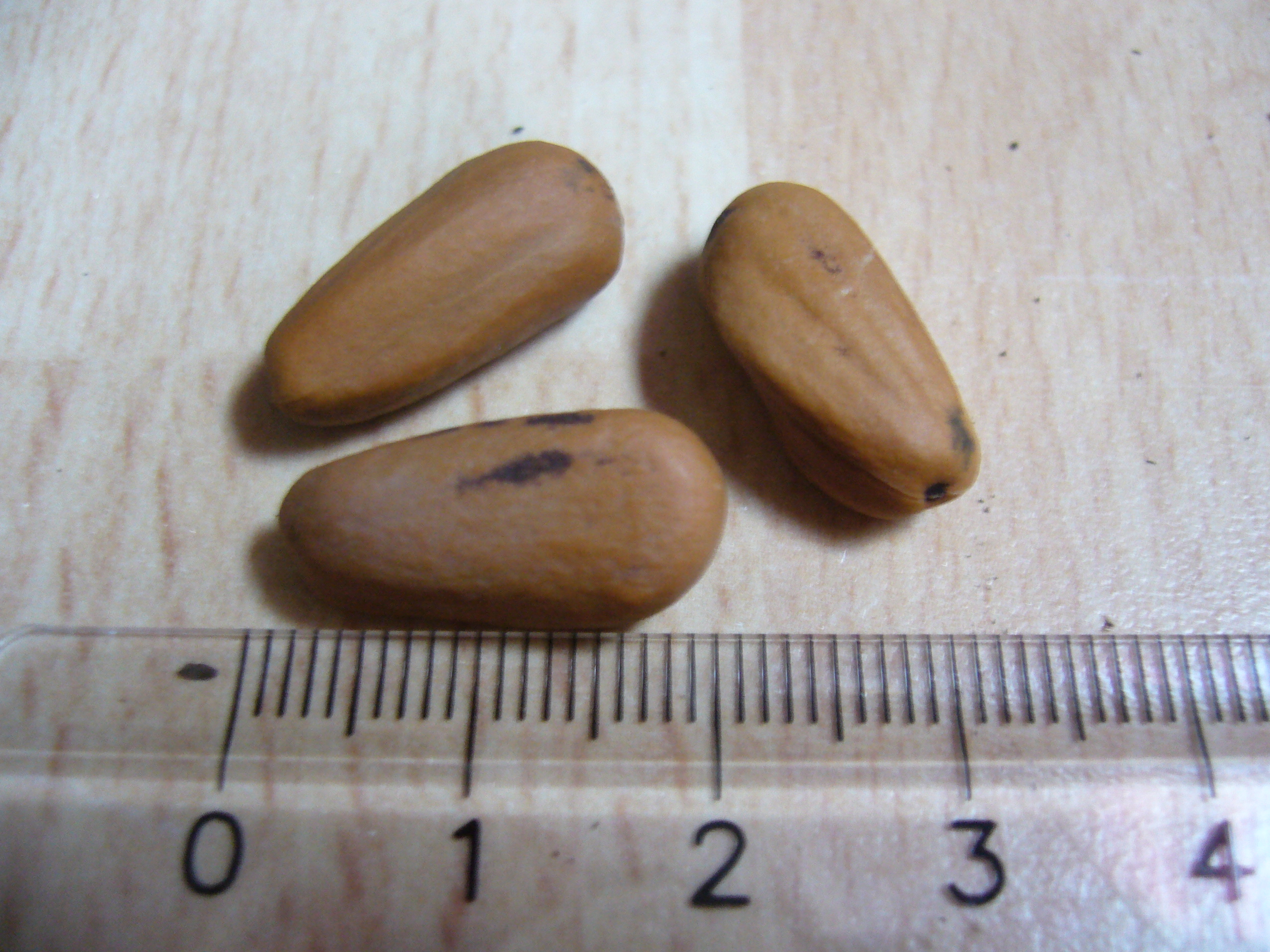 Ich war letzens mit unserem Pflegehund draußen im Wald spazieren. Dann habe ich riesige Zapfen gefunden und mir gleich gedacht, dass da eventuell Samen drin sein könnte. Die Zapfen waren ründlich, mit dem Durchmesser von etwa 8 cm. Unter den Schuppen (?) befanden sich maximal 2 Kerne. Jetzt habe ich 33 Kerne, möchte die auch gerne einpflanzen. Ich tippe auf Pinienkerne, obwohl ich nirgendwo Pinien in der Nähe gesehen habe. Wahrscheinlich vom Wind dahingeblasen. Ich habe auch einen Kern geknackt und das Innere sieht so aus, wie bei den handelsüblichen Pinienkernen, also weiß. Probiert habe ich es nicht, weil ich mir ja nicht sicher bin, was es ist.