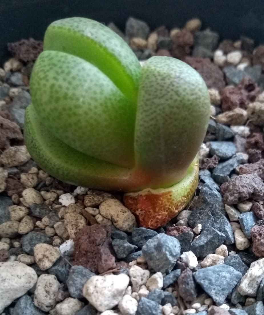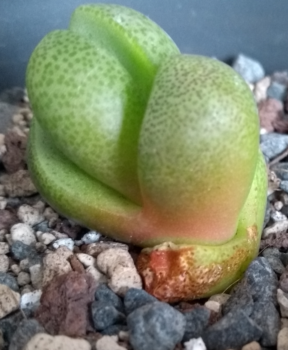 Pleiospilos stand seit ich sie vor Monaten gekauft habe im falschen Substrat (normale Blumenerde). Der Verfall begann aber schon Wochen vor dem Umtopfen in Bims/Lava/Basalt/Blumenerde gemisch (habe es im neuen Substrat bisher noch nicht gegossen und wollte erst mal 2 Wochen warten). Der rote Teil schrumpft immer weiter weg. Früher sahen die beiden, gegenüber liegenden Seiten gleich gut und lang aus. Der rote Teil ist weich und die gegenüber liegende Seite, die noch ok aussieht ist auch weicher als der obere, gesunde Teil. Mitte Mai sah es noch ganz gut aus (siehe unterstes Foto).